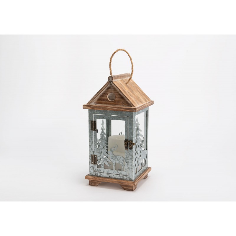 Lanterne en rotin ajouré 20×24 cm (anse 10 cm) verre 8×8 cm