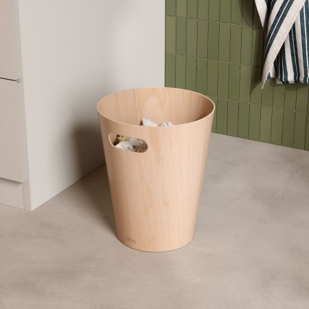 Embellissez votre espace avec Woodrow, une poubelle moderne, pratique et esthétique. Avec son élégant design bicolore, cette poubelle combine un intérieur en bois naturel et une finition teintée à l’extérieur, créant une atmosphère chaleureuse et accueillante. Grâce à ses poignées intégrées, Woodrow peut se déplacer facilement. Sa forme incurvée unique transforme cet essentiel du quotidien en une pièce de décoration qui se démarque. Parfaitement adaptée aux petits espaces tels que les salles d’eau ou les bureaux, Woodrow offre une capacité de 7,5 L. Pour un entretien optimal, utilisez un sac poubelle ou évitez de mettre des objets mouillés directement contre la surface du bois.