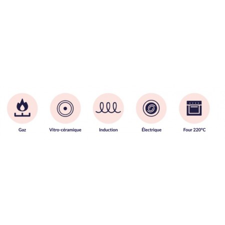 La Merveilleuse casserole est compatible tous feux : gaz, vitro-céramique, induction, électrique et four jusqu'à 220°C.