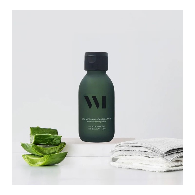 - Enrichie en aloe vera bio, reconnu pour ses propriétés apaisantes et hydratantes, cette eau micellaire démaquille la peau en douceur tout en respectant son équilibre naturel. Sa formule minimaliste, sans ingrédients superflus, élimine efficacement le maquillage léger et les impuretés pour une peau fraîche, nette et confortable.