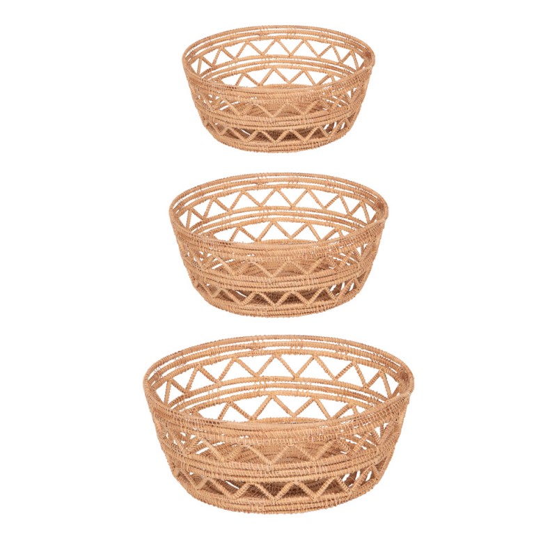 Apportez une touche naturelle et artisanale à votre intérieur avec ce set de trois paniers ronds en fibre de palme tressée. Leur design ajouré, à la fois élégant et léger, sublime la texture authentique de la matière tout en laissant entrevoir leur contenu.