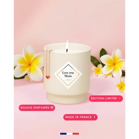 Au fil de la combustion, la cire fondue dévoile un bracelet en acier inoxydable orné d'un petit cœur rouge, soigneusement protégé dans une petite pochette en aluminium, tout en embaumant délicatement l'atmosphère d’un parfum solaire où se marient les notes de néroli, vanille et fleur de tiaré.