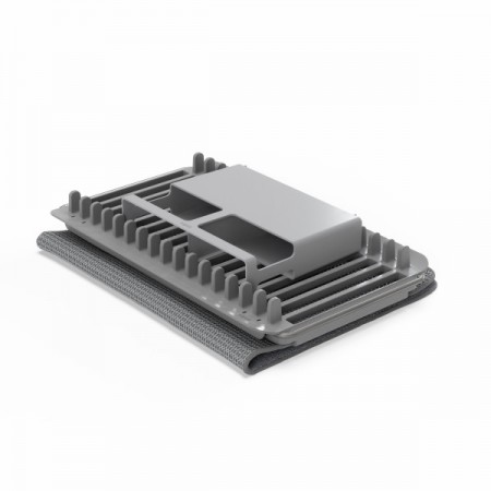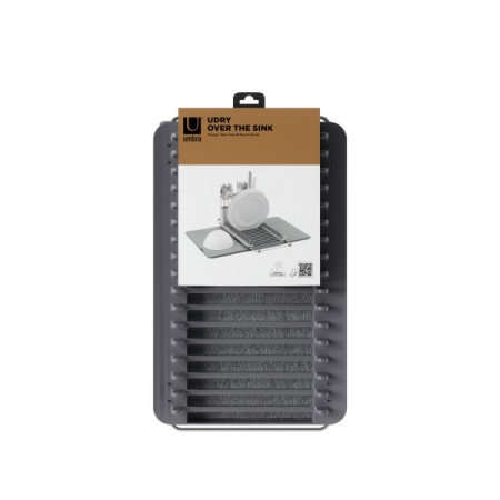 UDry comprend un tapis à vaisselle en microfibre absorbant ainsi qu'un porte-ustensiles et un égouttoir à vaisselle amovibles. Cette solution deux-en-un vous offre un rangement polyvalent et spacieux pour faire sécher rapidement votre vaisselle et vos ustensiles. Sans BPA, l'égouttoir à vaisselle peut être placé au milieu ou sur le côté du tapis en microfibre afin de maintenir votre vaisselle dans 16 espaces. L'égouttoir amovible peut également être installé au-dessus de votre évier grâce à ses bras en métal qui s'étendent de 33 à 56 cm pour s'adapter à votre évier. Léger et discret, il convient à tous les plans de travail et peut contenir un grand nombre de plats. Lorsque vous ne l'utilisez pas, il se replie facilement pour être rangé dans un tiroir ou un placard, et laisser votre plan de travail dégagé. L'égouttoir passe au lave-vaisselle (dans le compartiment supérieur uniquement). Le tapis est lavable en machine. Fabriqué à partir de plastique recyclé.