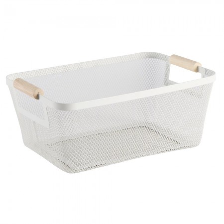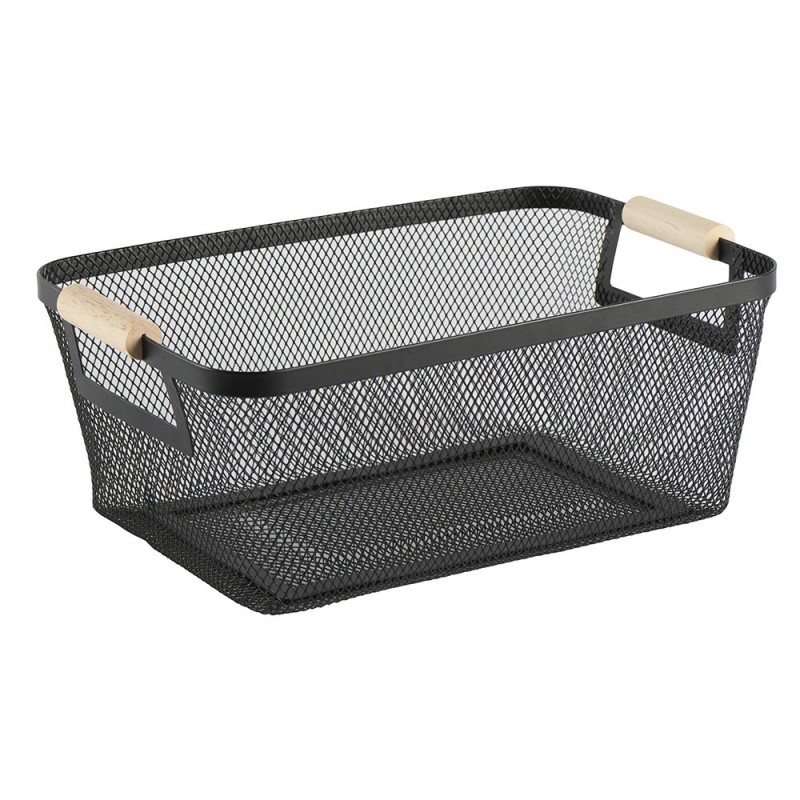 Panier de rangement rectangulaire en métal grillagé, 2 anses bois