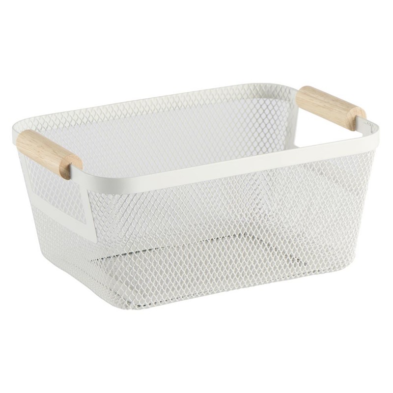 Panier de rangement rectangulaire en métal grillagé, 2 anses bois