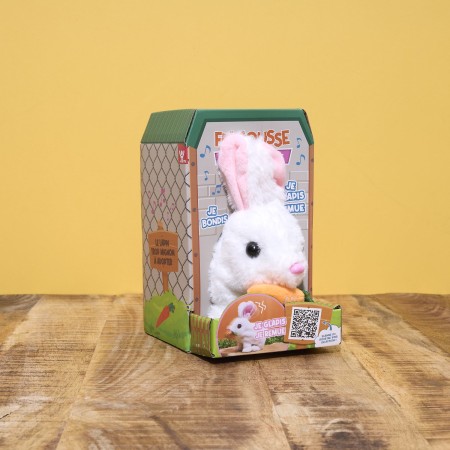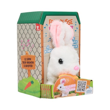 Les peluches sont souvent douces, attendrissantes et rassurantes… mais rares sont celles qui savent bouger ! La Peluche Frimousse le Lapin qui Marche casse les codes et apporte une touche de magie à vos instants de jeu. Avec son pelage blanc immaculé, ses grandes oreilles roses et son regard vif, il fait fondre le cœur de tous ceux qui croisent sa route. Mais la vraie surprise, c’est lorsqu’il se met en mouvement : Frimousse avance d’un pas léger, imitant le déplacement d’un vrai petit lapin. C’est irrésistible, amusant et tout simplement craquant.