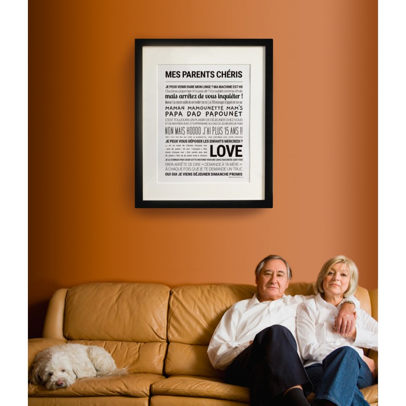Le cadeau idéal à offrir à ses parents chéris. Parce qu’on ne sait JAMAIS quoi leur offrir. (un mix des affiches « Maman chérie » et « à toi mon papa »)