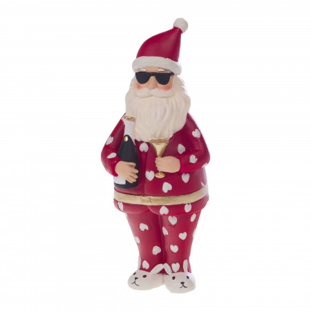 Figurine décorative en résine représentant un Père Noël sur scooter ou rockeur, ou festif, idéale pour enrichir une gamme d'objets déco classiques de Noël.