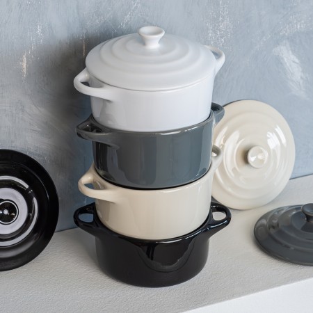 Offrez à votre cuisine une touche d'élégance monochrome avec le set de 4 mini cocottes Zen de chez Table Passion. Ces mini cocottes en grès, de couleurs beige, grise, blanche et noire, vous permettent de présenter vos créations culinaires avec style et sobriété. C'est l'ensemble idéal pour des plats individuels ou des accompagnements qui raviront vos sens.