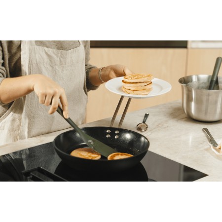 Utilisez-la comme une spatule pour la friture, par exemple, pour le wok ou pour retourner les hamburgers et les crêpes. Grâce à son revêtement en silicone pratique, rien n’y adhère. Il est également doux sur les surfaces même délicates pour éviter les rayures. La spatule peut être utilisée sur tout type de revêtement.