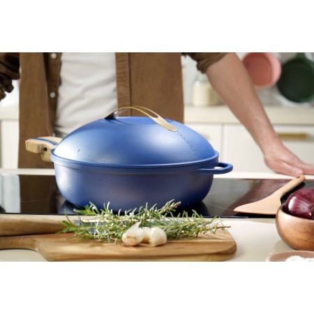 Inclus : 2 poignées détachables (une longue et une courte), un panier vapeur et une spatule en bois.