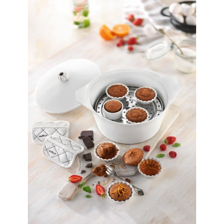 Vous choisissez la couleur de la cocotte + la poignée du couvercle (offerte) + la paire de maniques (offerte) + les accessoires (en supplément)