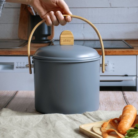 Avec anse en bambou pour transporter facilement jusqu’au composteur ou dans le jardin