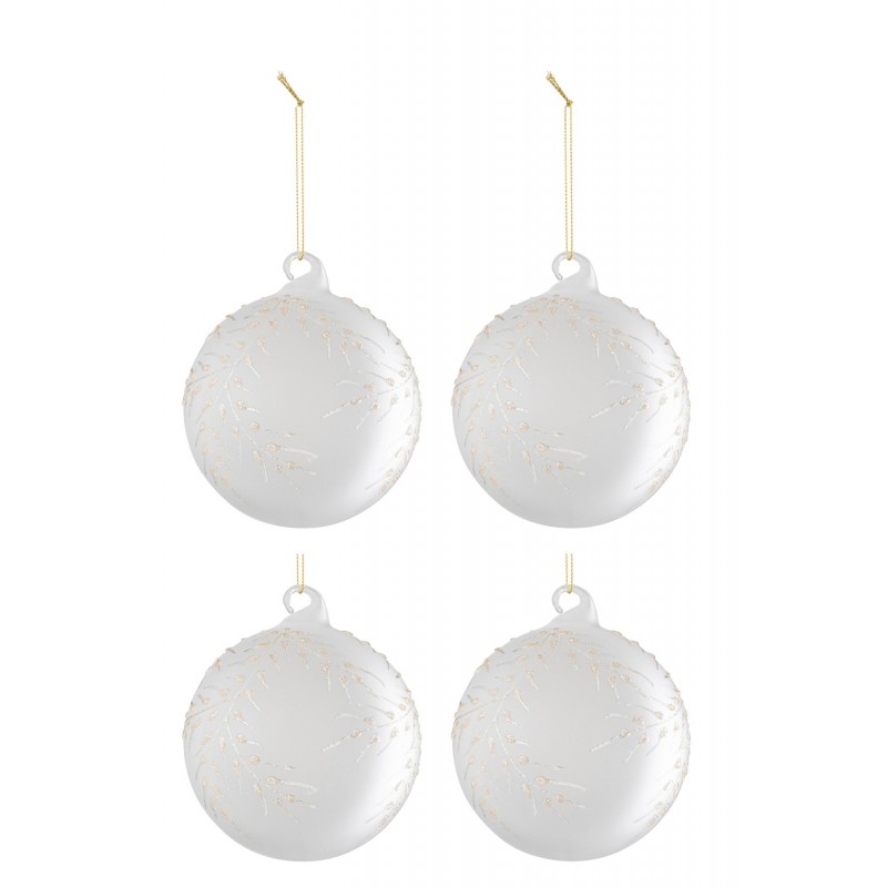 Boule De Noël Feuilles Verre Givré Blanc/Or